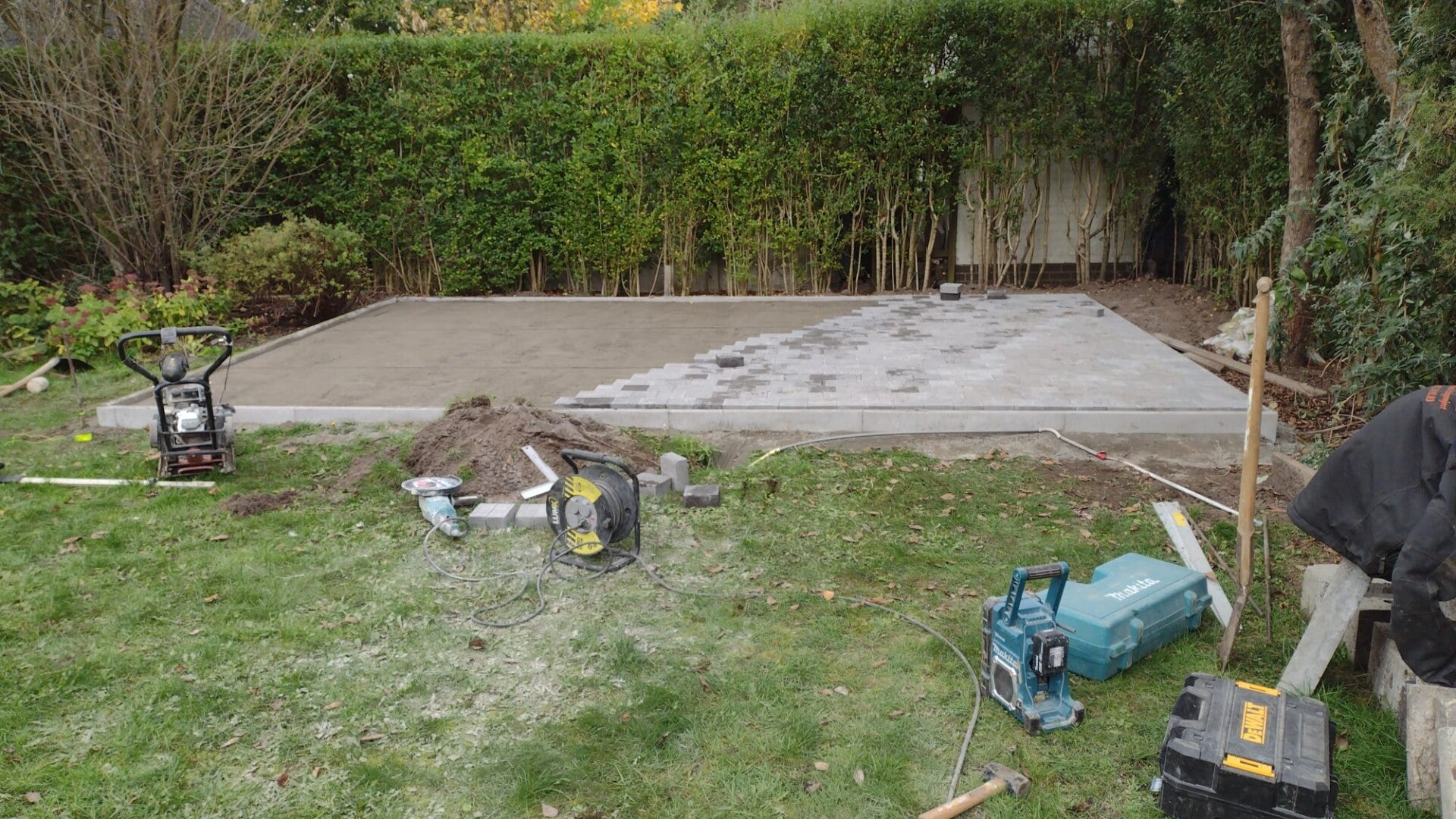Uitbreken van beton en leggen van klinkers